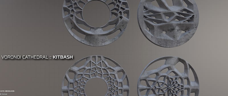 Introducing the Voronoi Cathedral kit! This series involves Greek architecture merged with Voronoi patterning. Most of the meshes have 3 versions: a 1-sided version, and 2 double sided versions. One with openings and one with sealed holes. Even though these are highpoly they still have proper edge loops which can be subdivided.